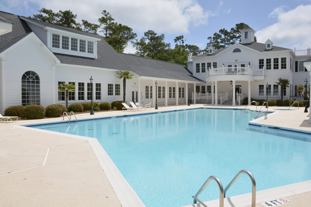 Amenities go well beyond the basics. The centerpiece clubhouse, known as the Grande Manor House, features both indoor and outdoor pools, a fitness center, spa amenities, and community event space. Walking and biking trails wind through the property; a private beach club on Holden Beach offers residents beach-side access, and the entire setup supports an active, outdoor-oriented way of life.